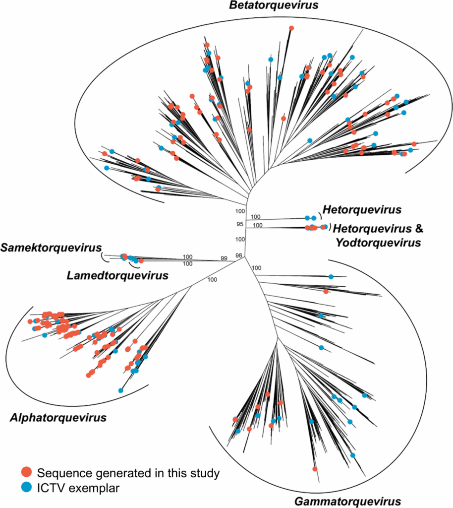 Phylogenetic analysis of anelloviruses based on ORF1 protein sequences. Reproduced from reference (Phumiphanjarphak et al., 2025), licensed under CC BY 4.0 (http://creativecommons.org/ licenses/by/4.0/). No changes were made to the original figure.